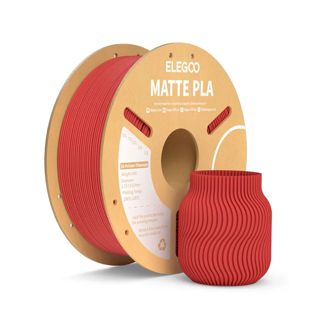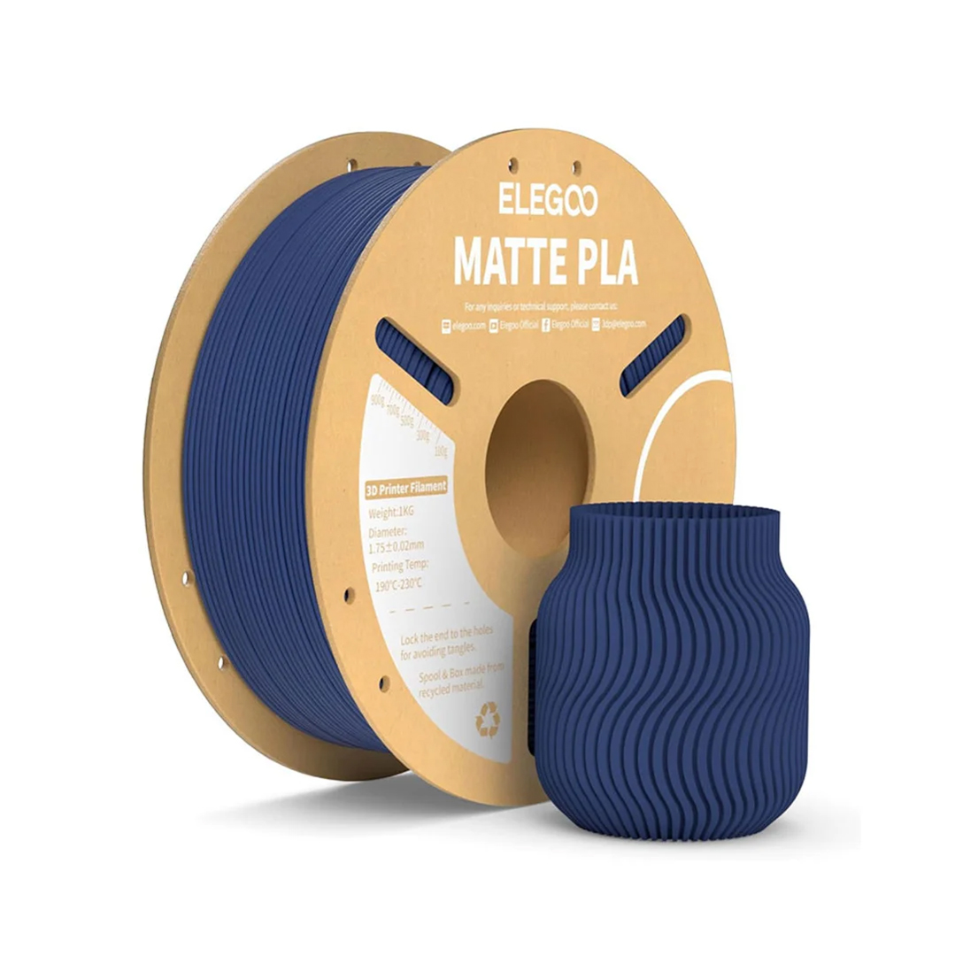 نوع فیلامنت: فیلامنت PLA مات برند ELEGOO تنوع رنگ: طیف رنگهای مات قطر فیلامنت: 1.75 میلیمتر (±0.02 میلیمتر) بافت سطح: ظاهر مات و یکدست با خطوط لایهای کمنمایان وزن خالص: 1 کیلوگرم چگالی: 1.26 گرم بر سانتیمتر مکعب استحکام کششی: حدود 30 ± 1 مگاپاسکال متراژ در هر رول: حدود 330 تا 335 متر سازگاری: قابل استفاده در اکثر پرینترهای سهبعدی FDM با صفحات ساخت مختلف بستهبندی: وکیومشده همراه با رطوبتگیر برای حفظ کیفیت چاپ