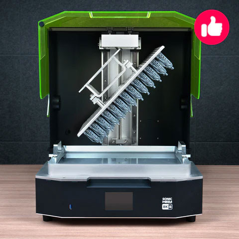 یکی از نقاط قوت این پرینتر ال سی دی 8K آن میباشد , ابعاد این ال سی دی مونوکروم 33x18.5 سانتی است که با توجه به ابعاد آن میتوانید تعداد مدل های بیشتری را در یک مدت زمان مشخص تولید کنید با کمک این ال سی دی شما میتوانید به رزولوشن XY معادل 43µm دست پیدا کنید , زیر این ال سی دی یک منع نور UV پارالل قرار گرفته که قادر به تاباندن پرتوهای UV 405nm است این منبع نوری قدرتمند به شما در تولید لایه های با کیفیت و دقیق کمک بسیاری میکند , الگوی تابش پرتو ها نیز با کمک عدسی های قرار گرفته بر روی منابع نوری به شکلی تنظیم شده است که لایه های به صورت کاملا یکنواخت و با دقت بالا تشکل شوند